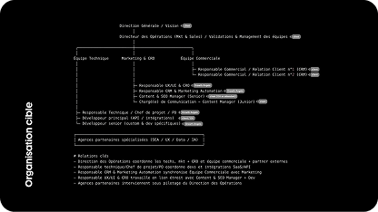 Nous vous accompagnons pour construire un marketing qui scale : définition des rôles, priorisation des missions, choix des outils, organisation des rituels (revue pipeline, comité éditorial, sprint marketing).